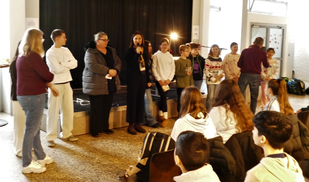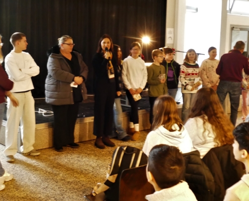 In den ersten beiden Schulstunden präsentierten sie zunächst drei Minuten lang einen selbst ausgewählten Buchauszug, gefolgt von einer einminütigen Leseprobe aus einem unbekannten Text. Mit viel Ausdruck, Spannung und Lesefreude überzeugten alle Teilnehmenden das Publikum – doch am Ende setzte sich Katharina aus der 6b mit dem Klassiker „Eine Woche voller Samstage“ durch. Sie wird unsere Schule nun auf städtischer