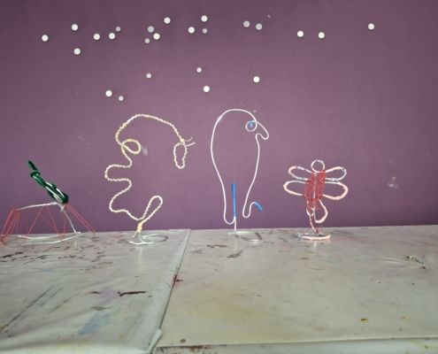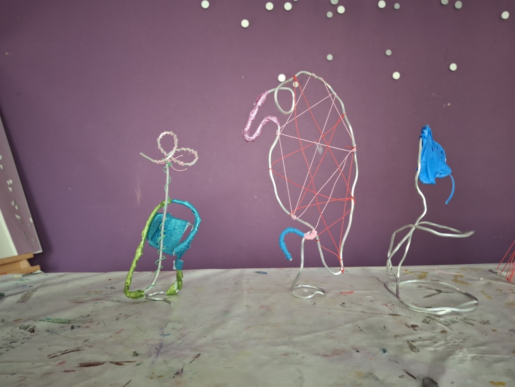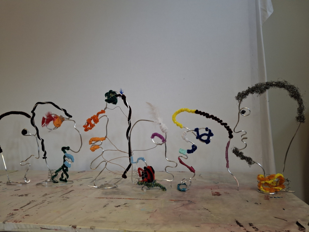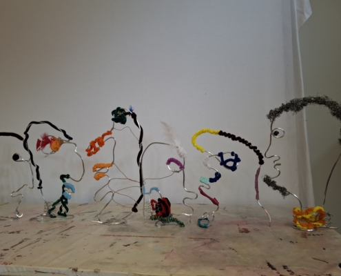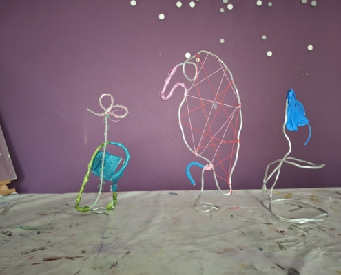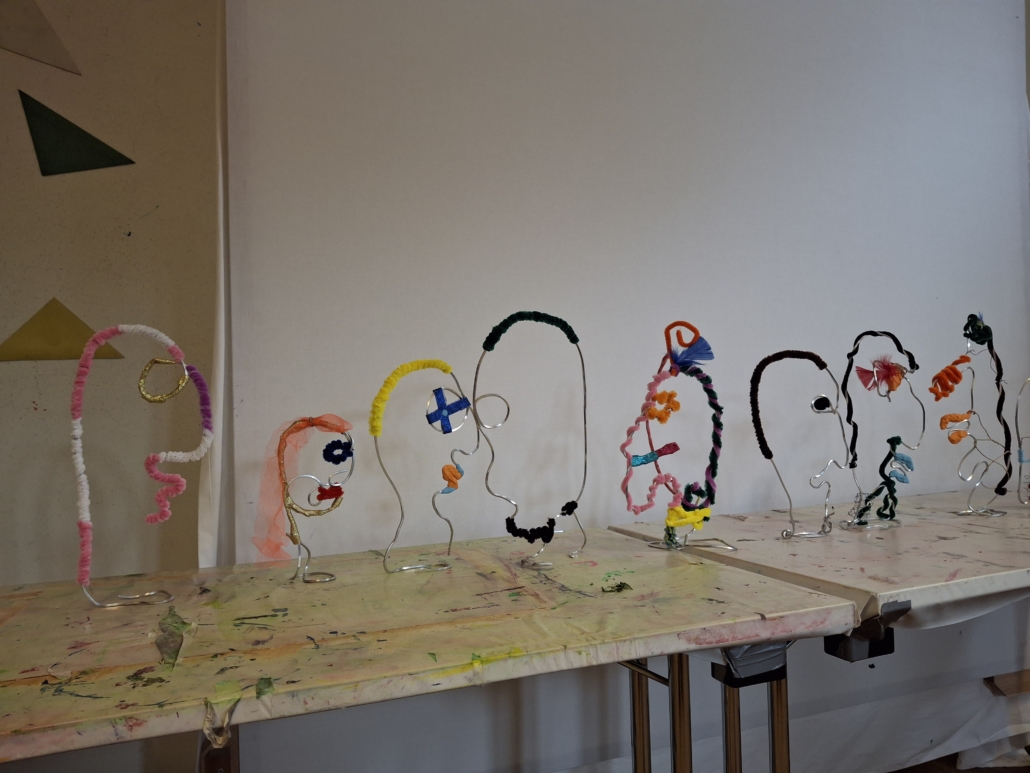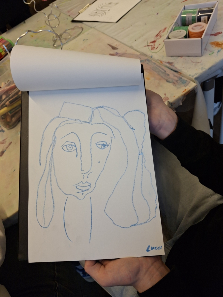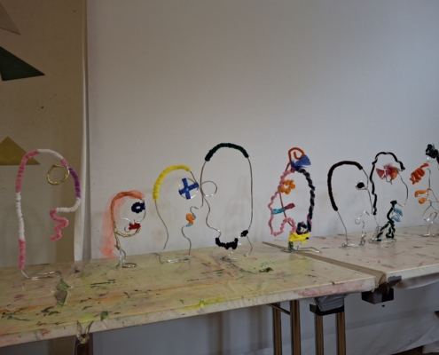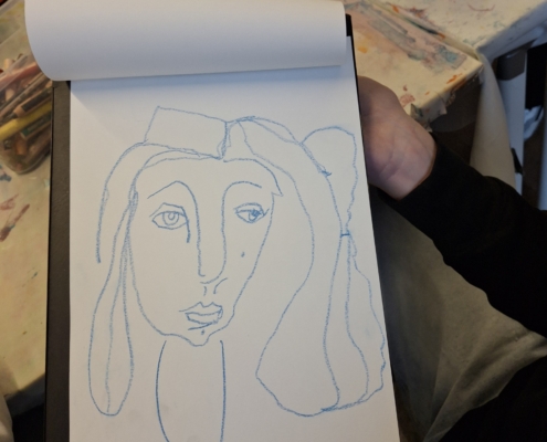 Schnell erkannten sie den Unterschied zwischen einer sehr realistsichen Darstellung und Pablos Art Menschen zu zeichnen. Selbst seine Methode nur mit einer Linie, oder ganz wenigen, etwas zu zeichnen  wurde bestaunt und dann nachgeahmt. Beeindruckend gute Werke entstanden. Im zweiten Teil sollte aus einer zweidimensionalen Zeichung eine Skultur entwickelt werden. Sehen Sie selbst, was dabei herausgekommen ist! Schlummert in jedem ein kleiner Picasso?